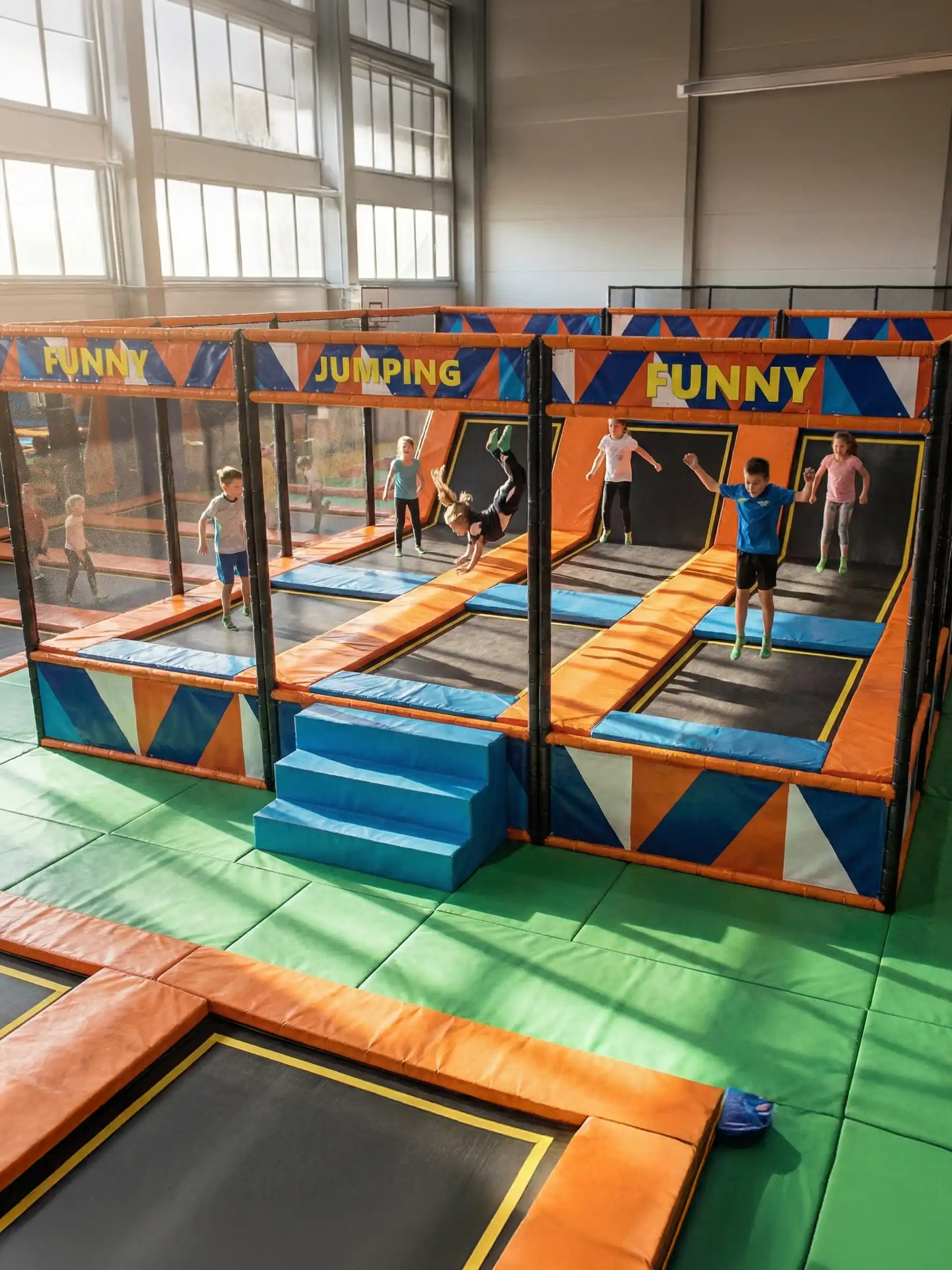 Thrilling heights demand uncompromising safety. Engineered with heavy-duty galvanized steel frames, high-tensile springs, and extra-thick padding, our industrial-grade structures strictly meet international safety standards for high-traffic commercial use.
